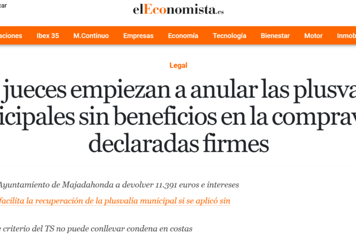NUEVA SENTENCIA SOBRE EL IMPUESTO DE LA PLUSVALÍA MUNICIPAL A FAVOR DE UN CONTRIBUYENTE QUE RECONOCE LA NULIDAD DE PLENO DERECHO DE UNA RESOLUCIÓN ADMINISTRATIVA DICTADA POR UN AYUNTAMIENTO EN EL AÑ0 2017 El abogado Carlos Rivero, del despacho jurídico Afeplus, nos comunica de nuevo una sentencia que ha conseguido a favor de un…